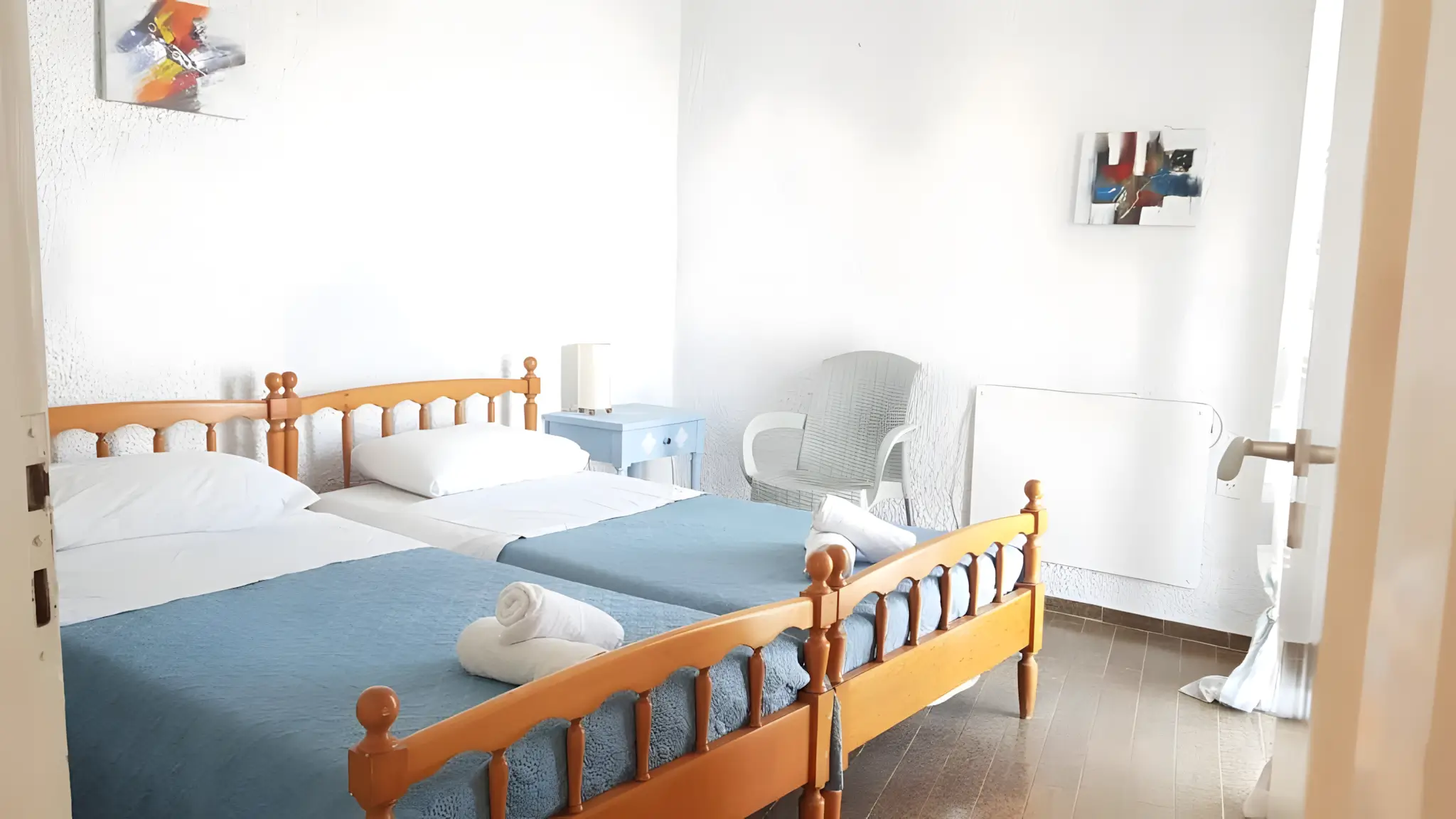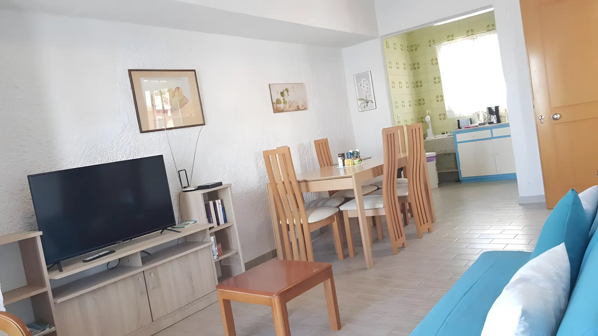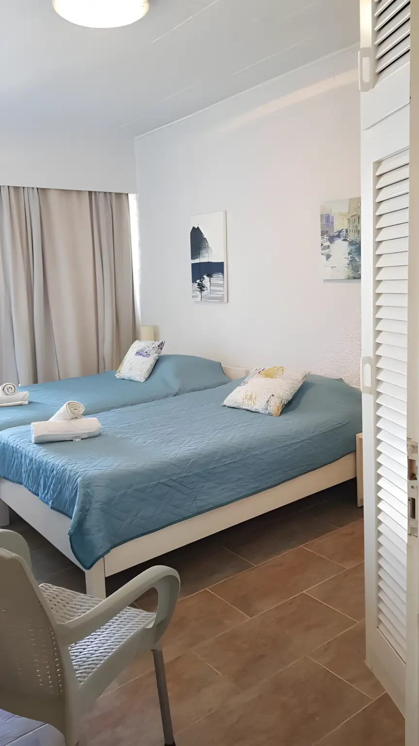Spanning 60 m², this welcoming home features a comfortable double bedroom, a second bedroom with single beds, and a cozy living area with a sofa bed. The apartment also offers a fully equipped kitchen, air conditioning, high-speed Wi-Fi, a modern bathroom, and a spacious balcony and terrace.